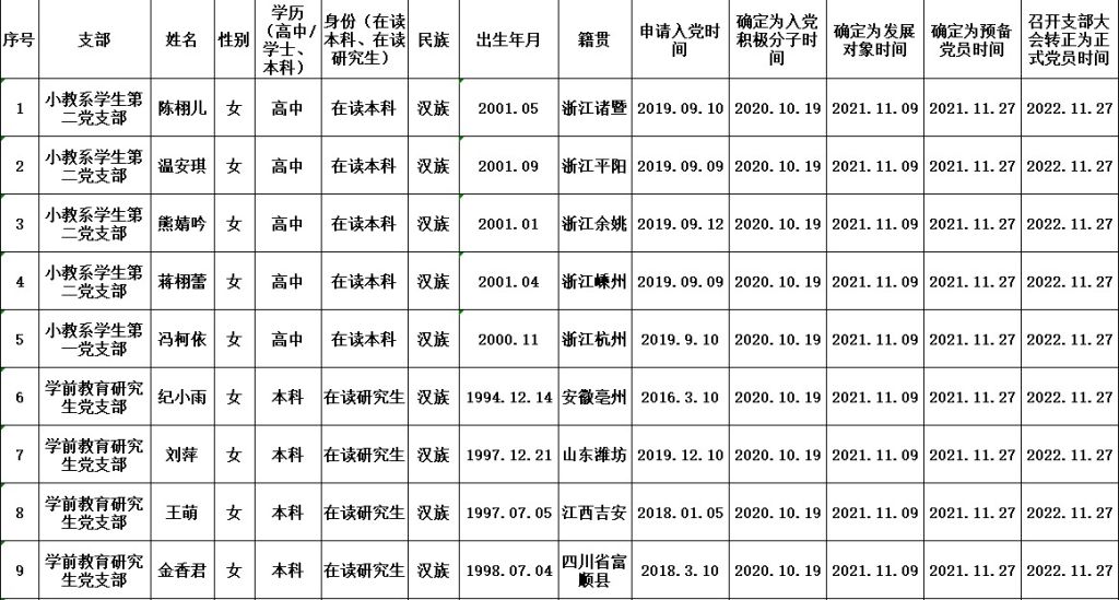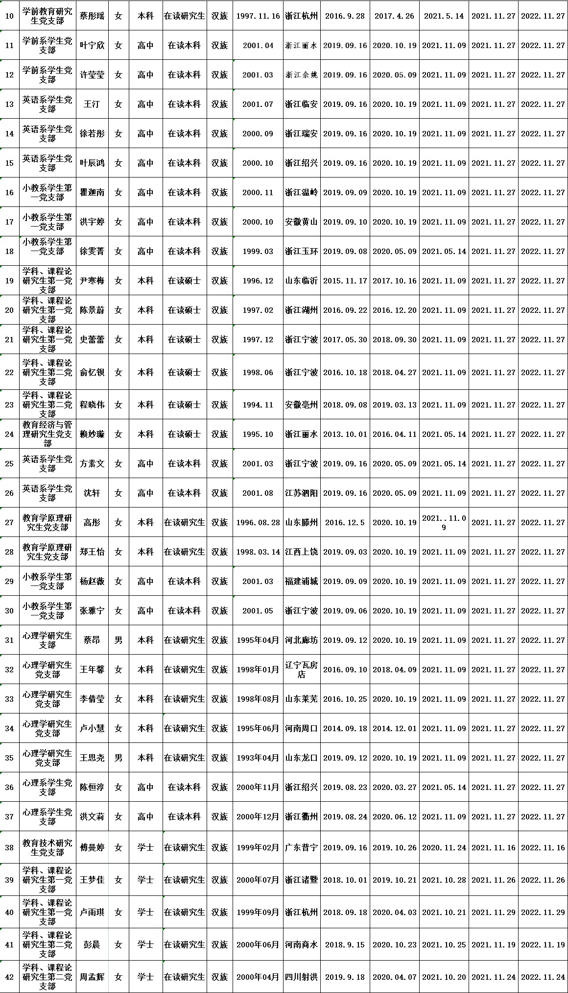 党委会集体审议讨论了陈栩儿等42名同志的转正问题。党委委员共7名,实到会7名。经逐个审议和表决,7名党委委员一致认为陈栩儿等42名同志已具备正式党员条件,同意批准按期转为中共正式党员,党龄从预备期满转为正式党员算起。具体名单公布如下: