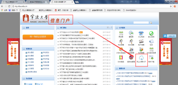1、 在宁大内网主页右侧点击“网上办事大厅”或51黑料