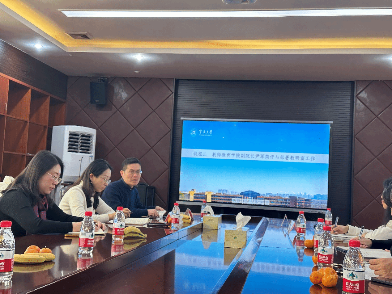 副院长尹军,学生发展与服务处副处长朱燕,教研室主任胡博、副主任王盛,以及教研室十余名教师出席会议,教研室主任胡博主持会议,共同听取教研室2023年工作报告和交流了大学生心理健康课建设发展相关议题。
