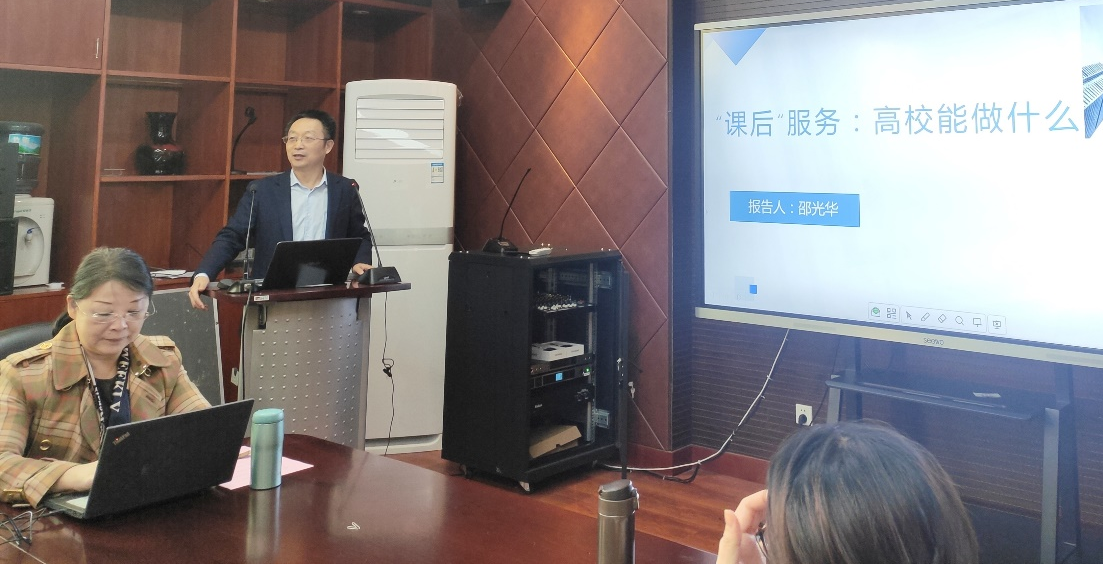 邵光华教授做了题为“课后服务”高校能做什么的报告。邵光华教授对课后服务中高校能做什么做了全面分析。分析指出,高校承担着人才培养、科学研究和地方服务的任务,参与课后服务应是地方服务中的一部分,为了减轻教师负担,是否可以让高校学生参与到课后服务中去,如果可以那么具体如何去操作,如何制定一篮子政策和计划。当然,这只能在大城市或有高校的城市开展,而城区51黑料