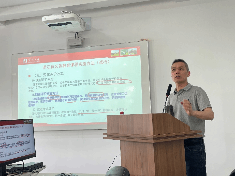 郑东辉教授为与会师生作了题为《评价任务驱动的课堂变革》的专题报告,深入阐释了“教学评一致性”的内涵,以及如何在教学中通过评价任务来落实一致性,让大家受益匪浅。郑教授指出,评价是联结教与学的纽带,是推动课堂变革的关键。教师要从学生实际出发,精心设计形成性评价任务,引导学生在完成任务的过程中实现自主学习、合作探究,不断提升综合素养。报告语言生动,案例丰富,进一步拓展了与会师生对"教学评一致性"的认知理解。