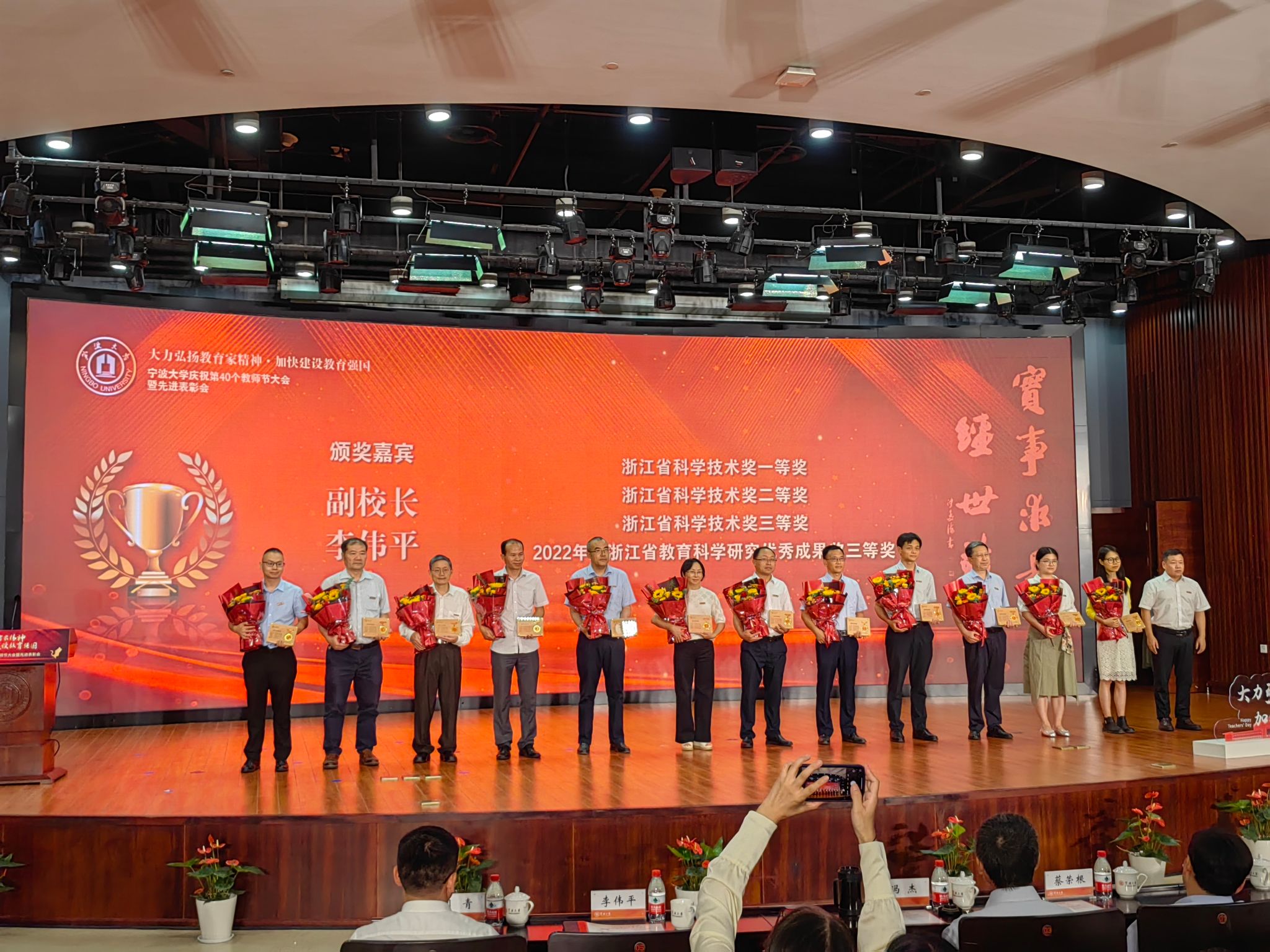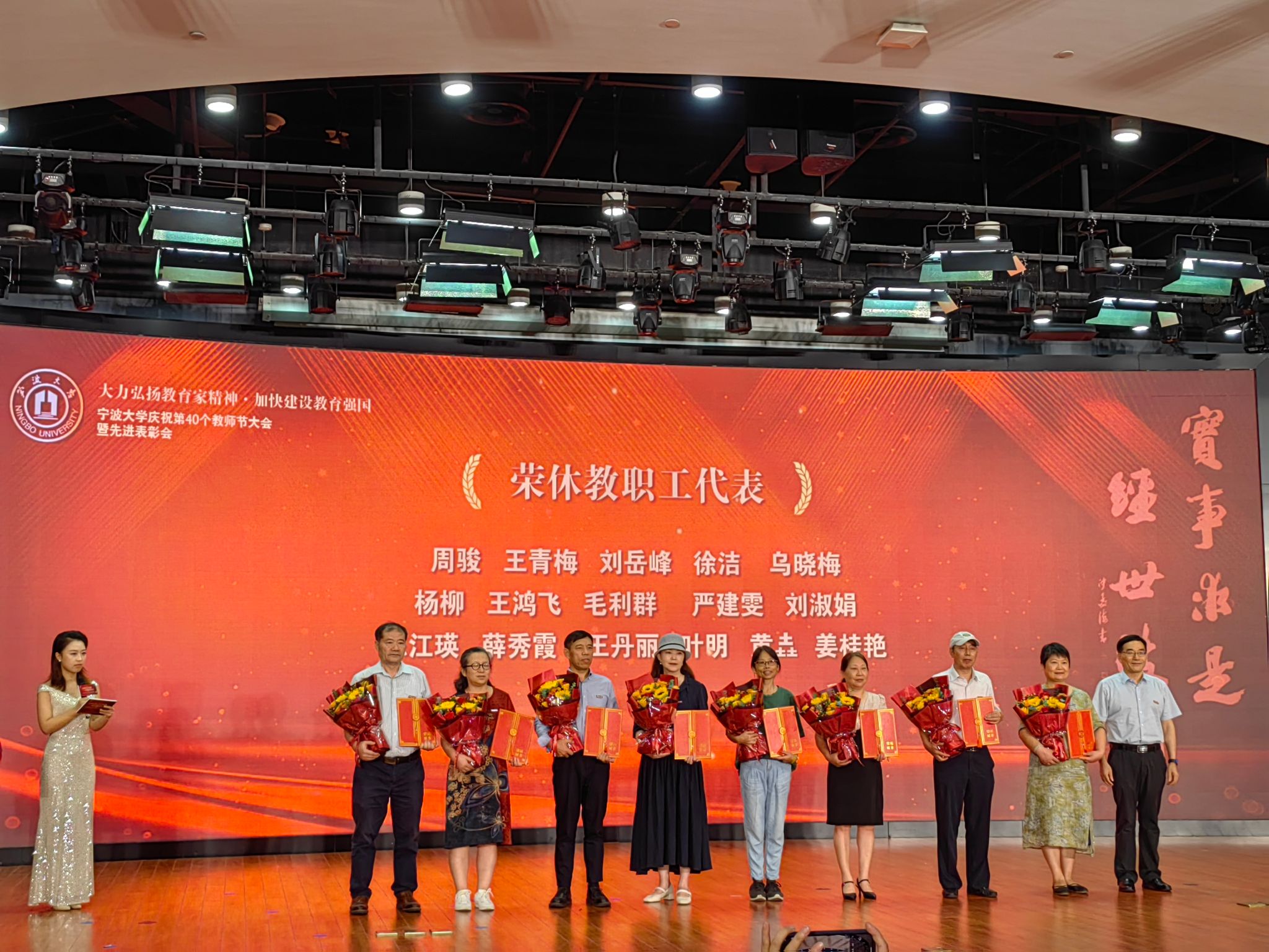 获得2022年度浙江省教育科学研究优秀成果奖三等奖的池夏冰老师(右二)颁奖