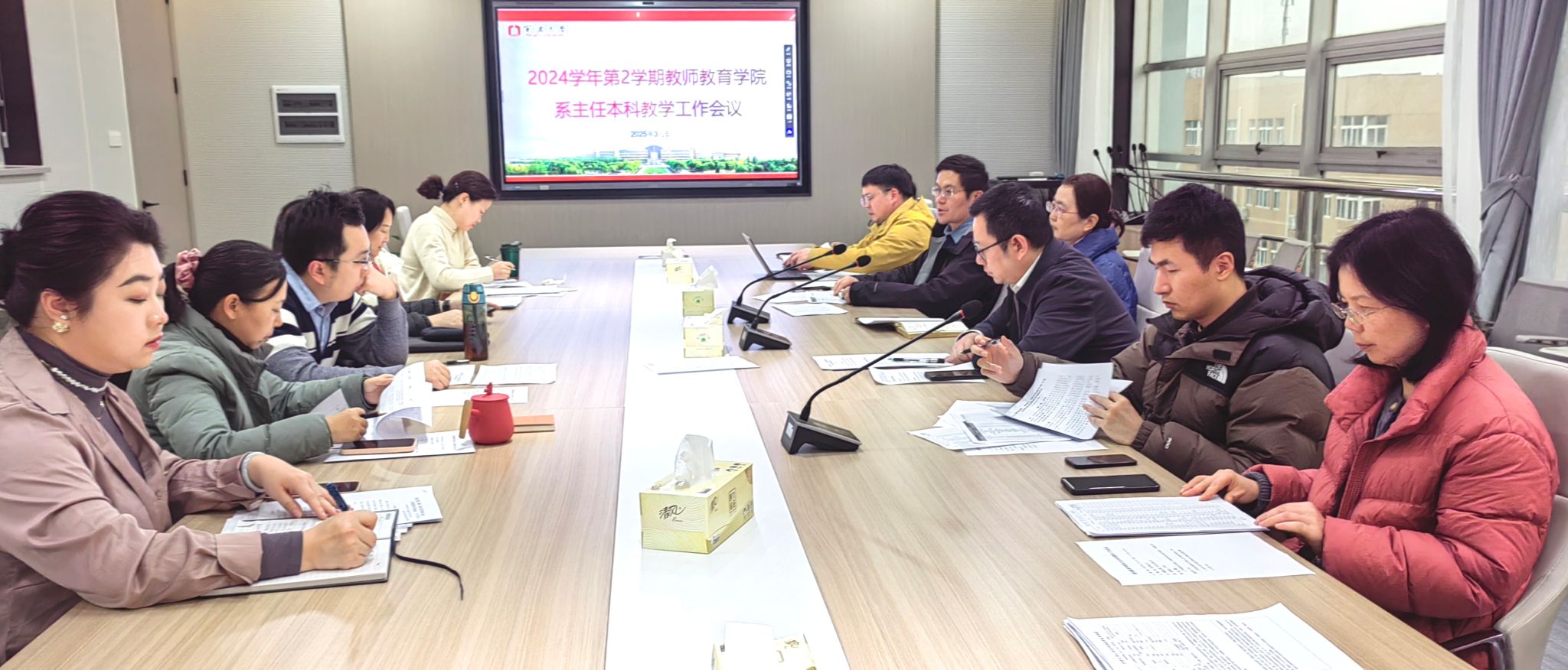 在课程建设、教研成果、推免工作等方面的本科教学进展情况,并对各系主任在过去一学期中的辛勤付出和取得的成绩给予了高度评价。同时尹军副院长对新学期的本科教学工作进行了详细部署,并提出了以下具体要求:各专业应高度重视教学成果奖的申报工作,力争在教育教学领域取得更多突破性成果;强调国家一流专业建设应与人工智能(AI)深度融合,推动课程体系与教学模式的创新改革;继续以高质量就业和考研为导向,为学生提供更全面的支持与指导。学科专业的优化调整需紧密结合经济社会发展的实际需求,确保人才培养与社会需求相匹配。李慧仙副院长对小学教育和学前教育专业在师范认证中期材料上传工作中的高效表现给予了充分肯定,并对后续师范认证中期材料的完善工作提出了具体要求,强调要确保材料的规范性和完整性。各系主任分别汇报了本学期专业建设的发展思路,并就各专业在建设过程中遇到的实际困难进行了深入探讨。与会人员积极建言献策,为解决问题提供了切实可行的方案。