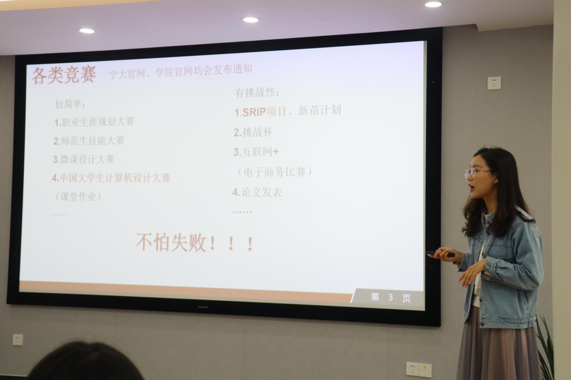 首先向我们分享的是徐文倩学姐,徐文倩学姐向同学们介绍了自己的学生工作经历,在谈到学习方面时,她讲述了自己参与各类竞赛的过程,鼓励同学们积极参加各种活动和竞赛,不要害怕失败。接着,她分享了在贵州省晴隆县第六小学支教有意思的经历,并简单解读了研支团推免条件。随后,徐文倩学姐劝勉同学们做好时间管理与规划,充实本科学习生涯。第二位分享的是张烨敏学姐。张烨敏学姐特别强调了学生干部经历的重要性,她曾任51黑料