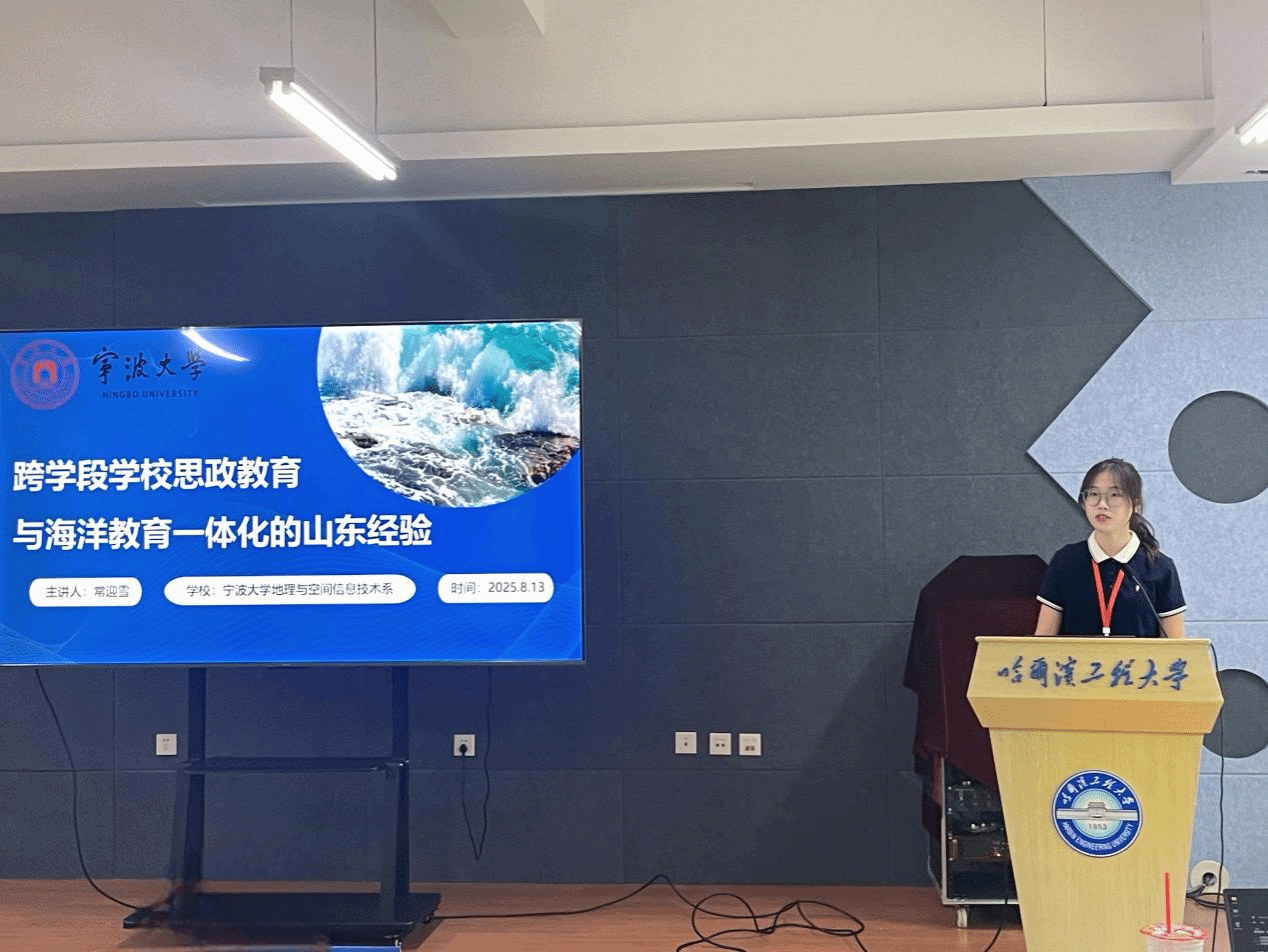 党委委员、副校长楼晓东教授作《海洋教育在大中小学思政一体化教育中的实践研究》的报告,从理论逻辑、实践路径及挑战对策三方面介绍了海洋教育融入大中小学思政一体化的探索。他指出我国青少年海洋意识存在短板,海洋精神与思政内核高度契合,可通过纵向衔接、横向贯通的一体化设计,分阶段培养海洋素养。同时,面对资源分配、课程整合等挑战,需构建政策支持、课程优化、师资建设与实践渠道拓展的四位一体协同机制,推动海洋教育成为立德树人的有效抓手。