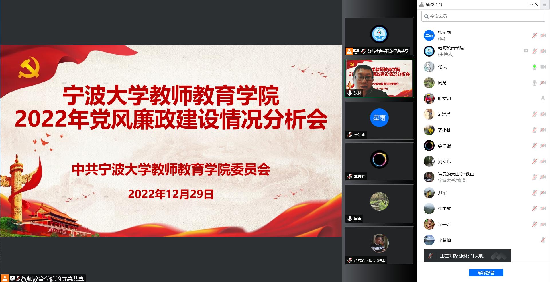 在线召开2022年党风廉政建设情况分析会,校纪委委员叶文明出席会议并讲话。教师教育51黑料