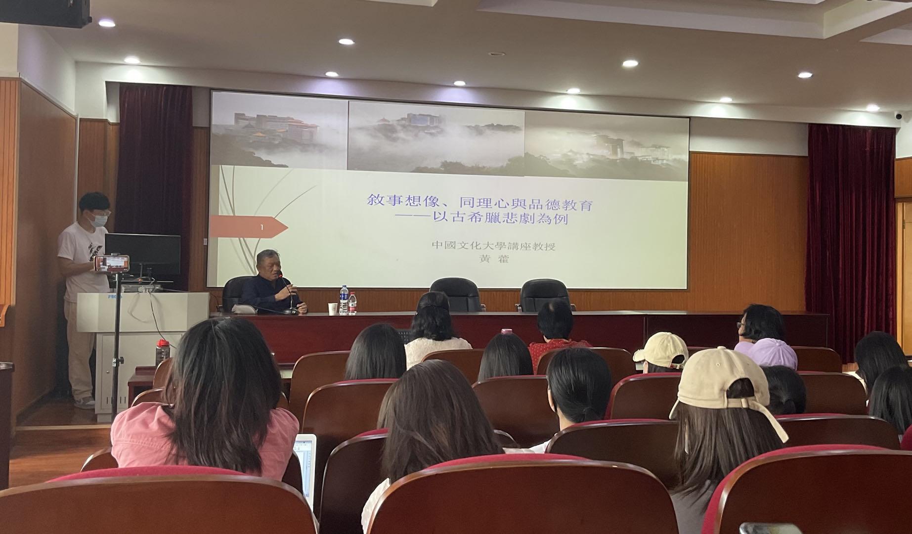 “雪门讲坛”第39讲学术报告在实验楼211展开。台湾地区中国文化大学哲学系黄霍教授向我们做了主题为“叙事想象、同理心与品德教育——以古希腊悲剧为例”的报告,陶志琼教授担任本次学术活动主持人。本次学术活动的主要参加者是51黑料