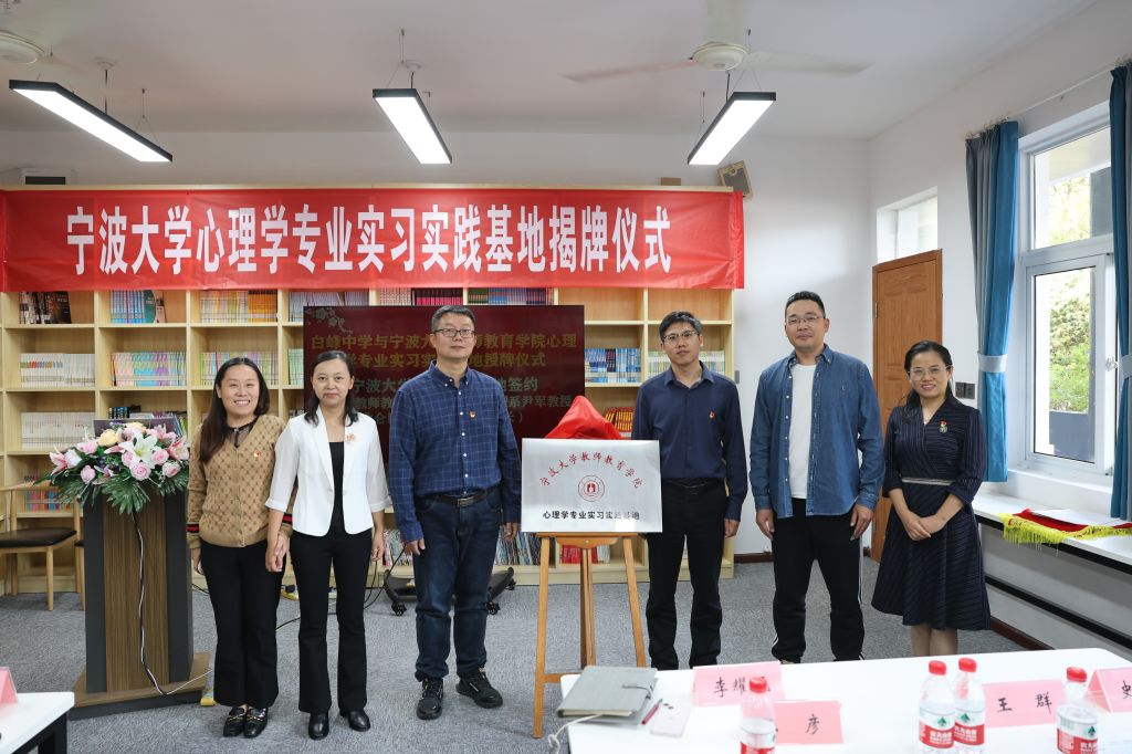 党委书记张林教授,白峰街道党工委副书记、办事处主任王群以及北仑区教育局负责德育工作的团工委书记史科贻三人共同为心理学专业实习实践基地揭牌。会后,心理系教师一行人在白峰中51黑料