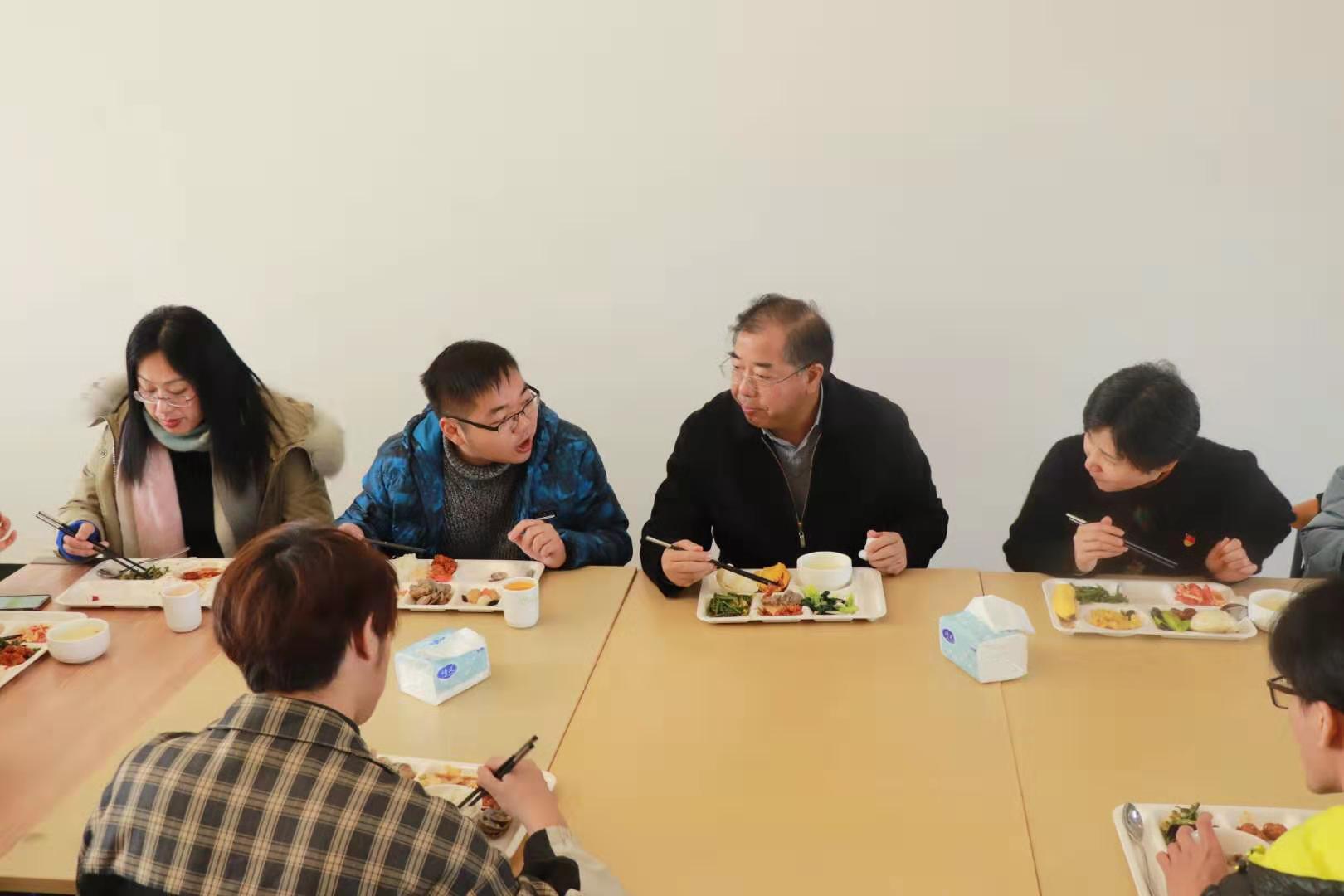走访结束后,沈校长与同学们共进午餐。沈校长十分关心学生的学习和就业问题,与师生们积极讨论,大家畅所欲言,现场洋溢着师生间的融融情谊。