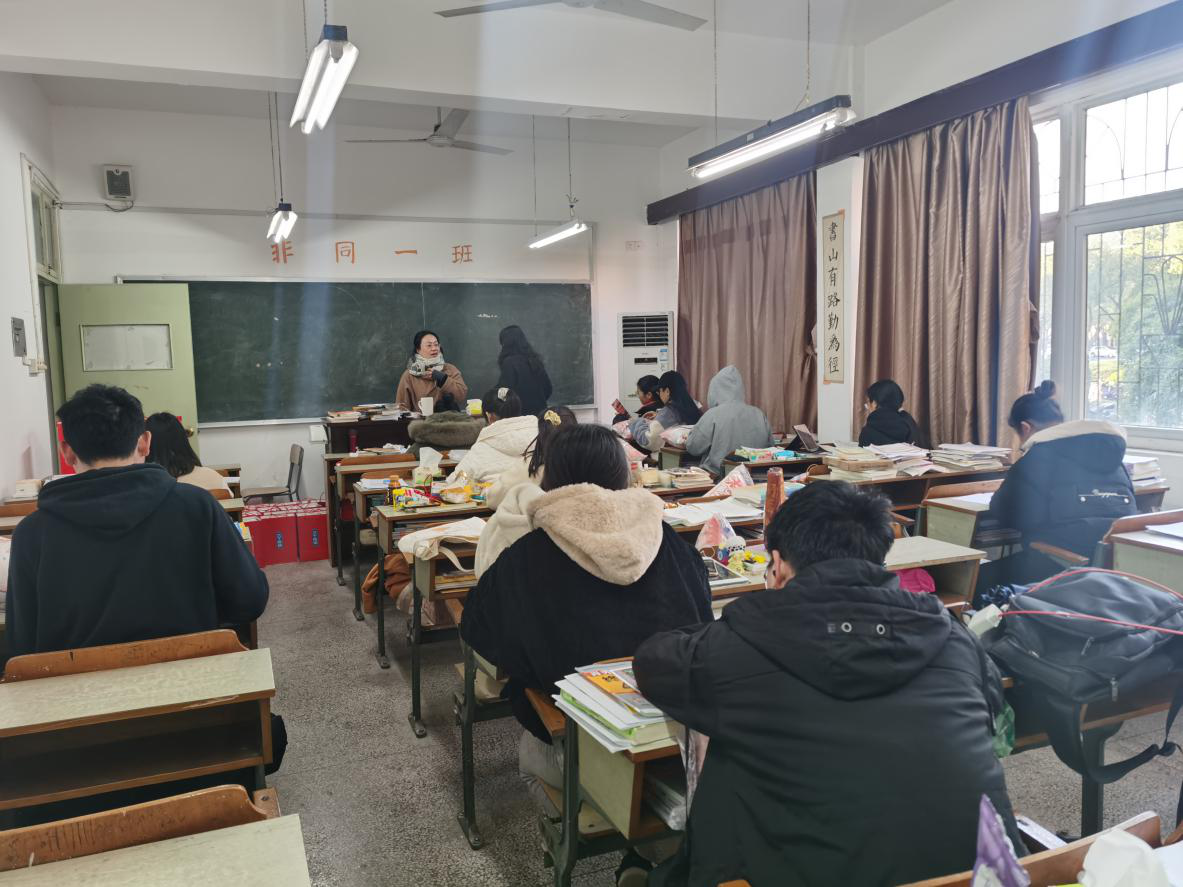 党委副书记王立衡老师、学工办主任龚小虹老师以及辅导员张倩倩老师于12月21日下午前往考研自习室慰问正在辛苦备战的师院考研学子们,为他们送上温暖与祝福。