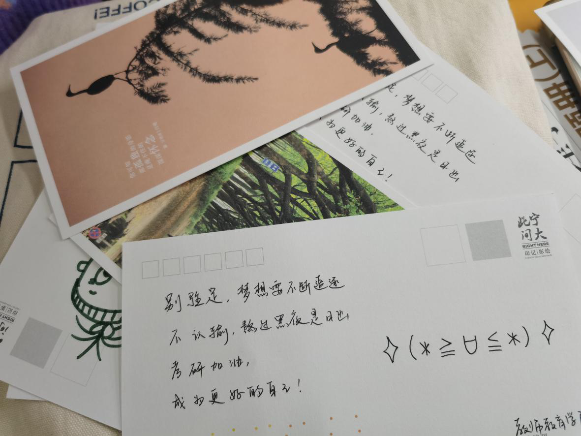 领导、老师们为同学们分发温暖礼包,送上亲手书写的祝福卡片,并与同学们展开了亲切地交谈。在简单了解了考研学子们的身心状态和备考情况后,王立衡老师和龚小虹老师从考前准备和身心健康等方面提出了诸多切实有效的建议:小心仔细,严守规则;坚持不懈,永不放弃;劳逸结合,科学备考;注意身体,调整状态。最后,老师们预祝大家在考研中取得佳绩。