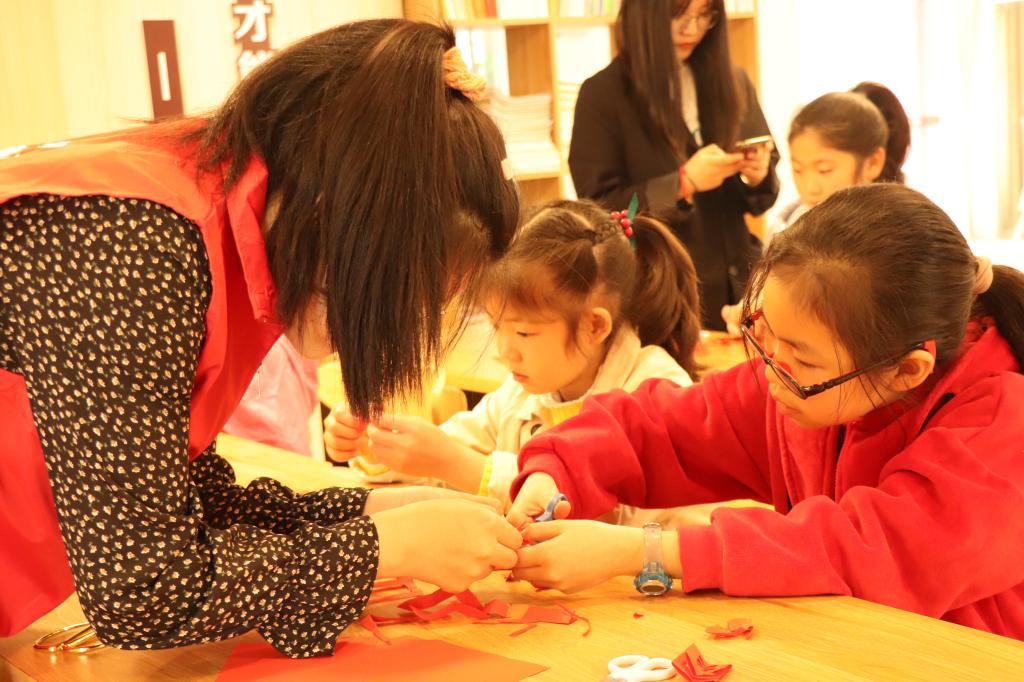 “非遗种子课堂”公益团队与宁波市镇海区庄市街道合作共同开展剪纸教学公益课,教小朋友将党的故事与精神“剪”出来。