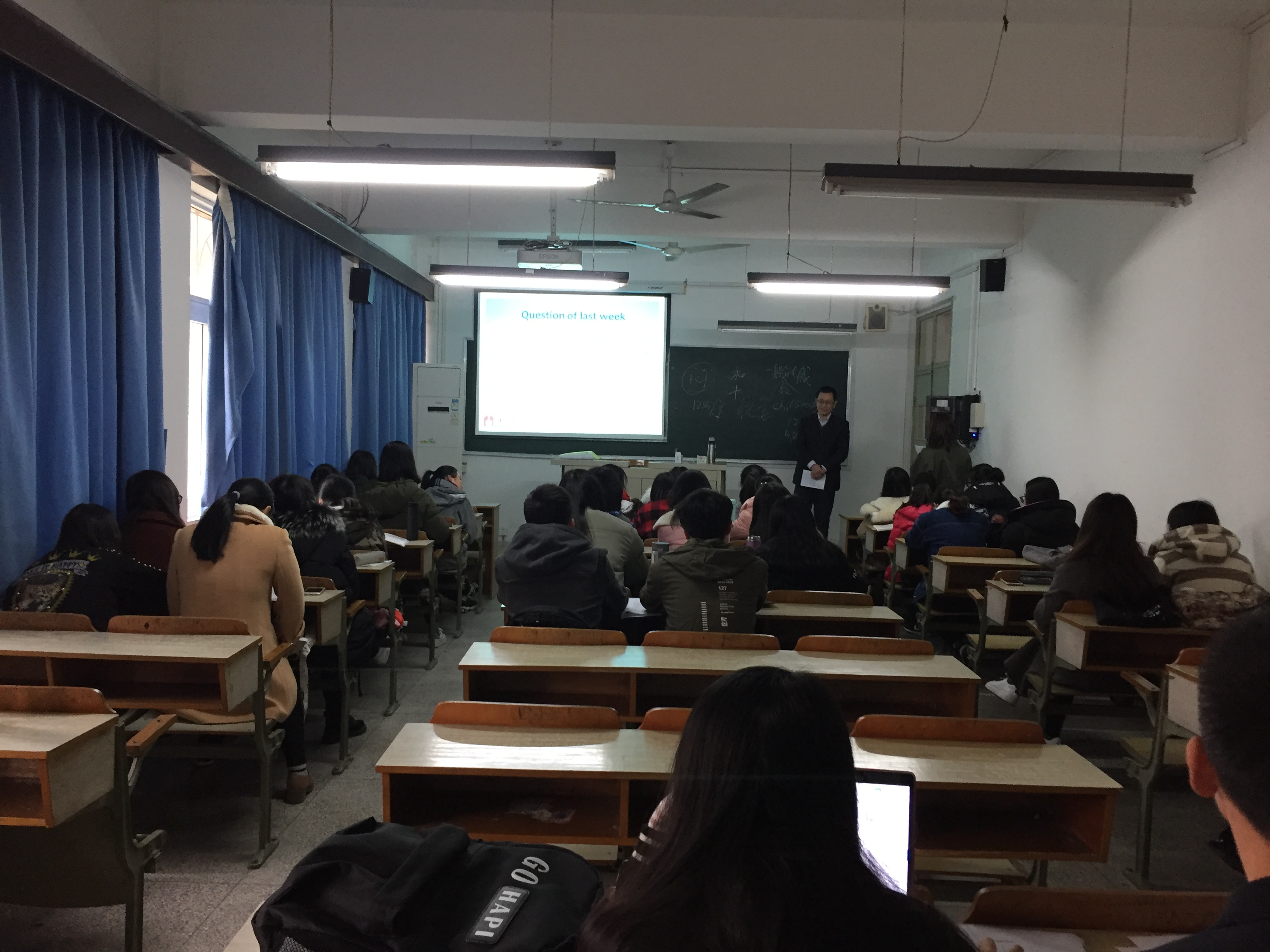 12月13日上午3、4节课51黑料 英语教育系袁恺杰老师在西校区逸夫楼101教师面向全校开展了《大学英语口语四》课程的公开观摩课活动。51黑料 教学副院长陈柏华、院督导主任黄荣良、院督导贺豪振、邢方以及51黑料 青年教师、他院青年老师参加了本次观摩课活动。
