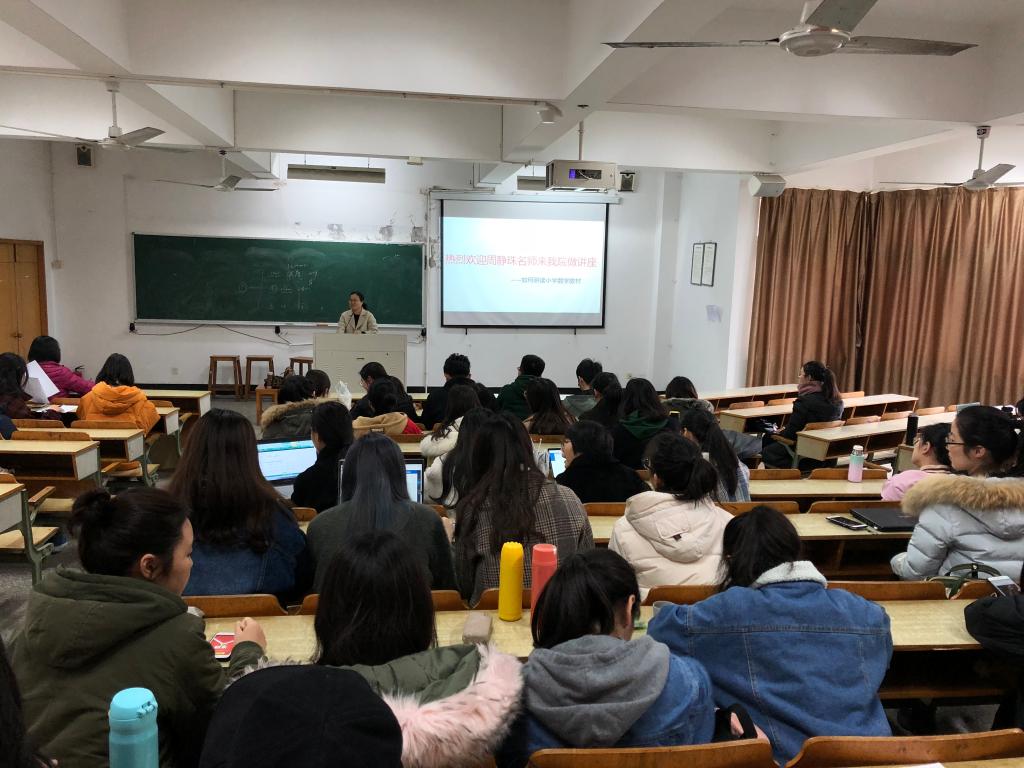小教系专题讲座“如何研读小学数学教材”在实验楼213如期举行。本次讲座由海曙中心小学副校长周静珠主讲,小教数学方向16、17级的同学前来听讲。小教系系主任黄荣良老师主持本场讲座。