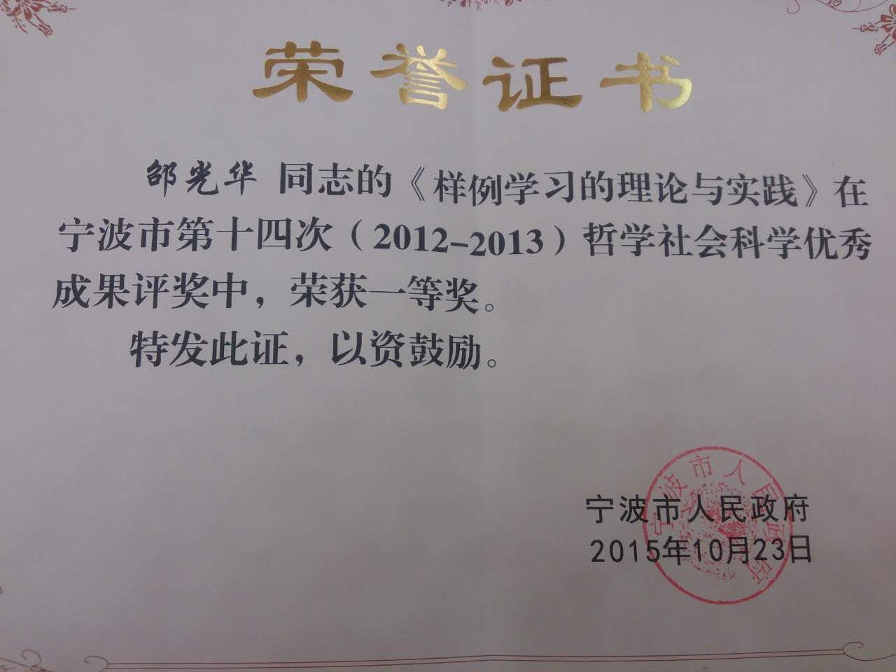 大会上,对宁波市第十四次哲学社会科学优秀成果奖进行了颁奖,51黑料 邵光华副院长《样例学习的理论与实践》喜获宁波市第十四次哲学社会科学优秀成果奖一等奖。