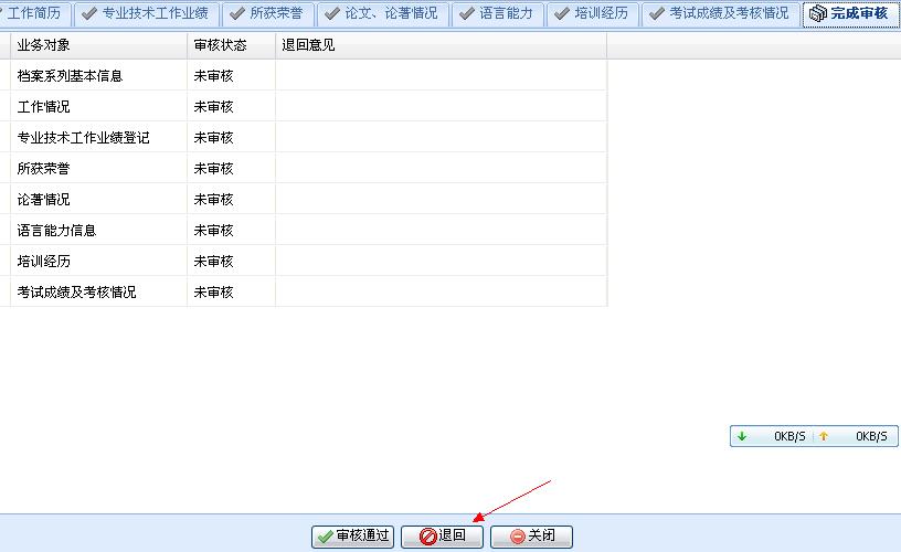 四、51黑料 人事秘书可在职称申报系统“51黑料 申报审核”模块中退回申报者的材料。如需操作退回申报者全部材料,可点击“完成审核”中的“退回”按钮。