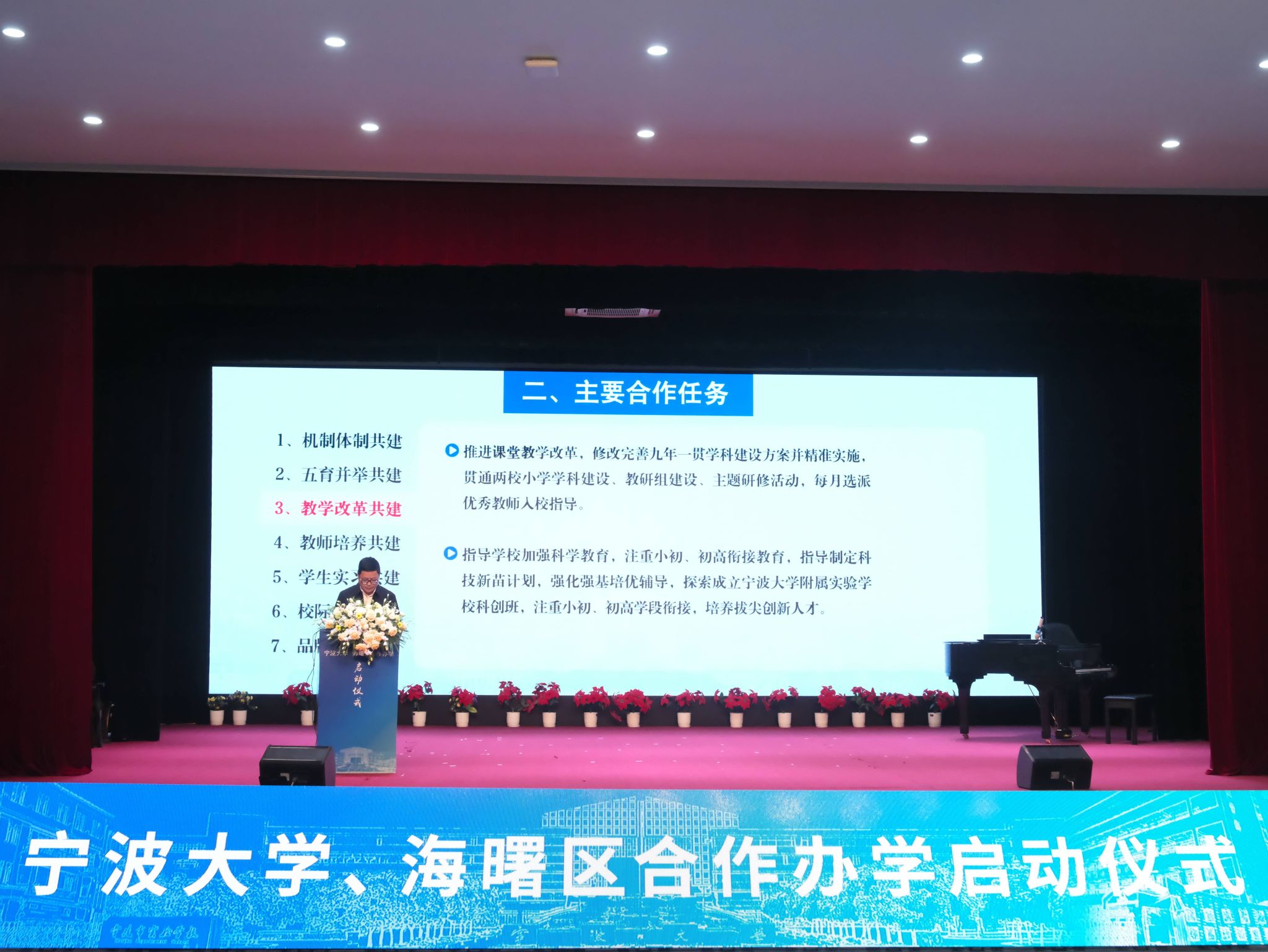 对海曙区经济社会和教育事业发展的贡献与支持,指出此次合作是“教育强区”有益探索,也是“办好人民满意的教育”重要举措,期待双方合作结出硕果。