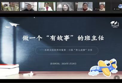 郑礼平、冯铁山教授的指导和俞芬老师的组织下,2024年1月28日,名班主任培养对象高级研修班第一小组于线上开展了“做一个‘有故事'的班主任”分享研讨活动。