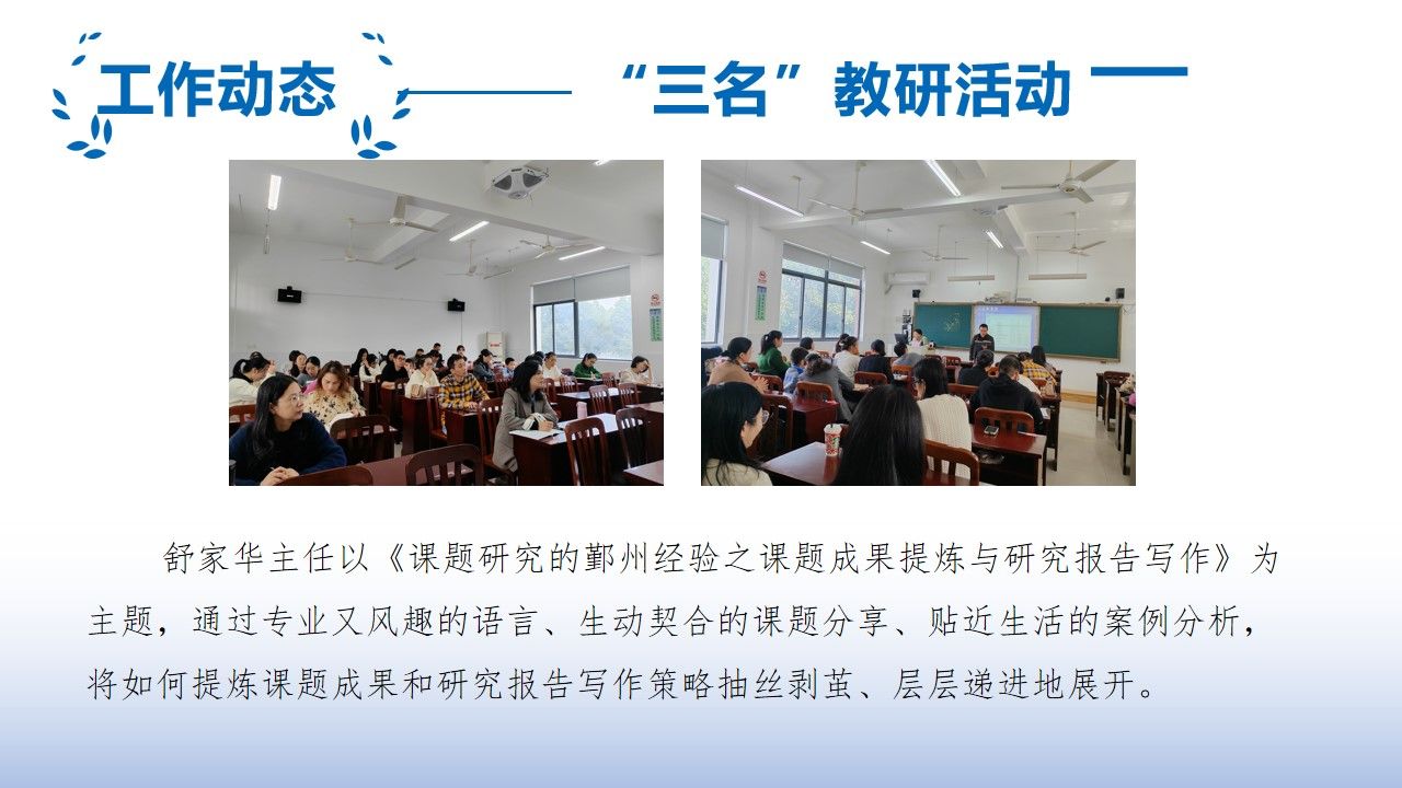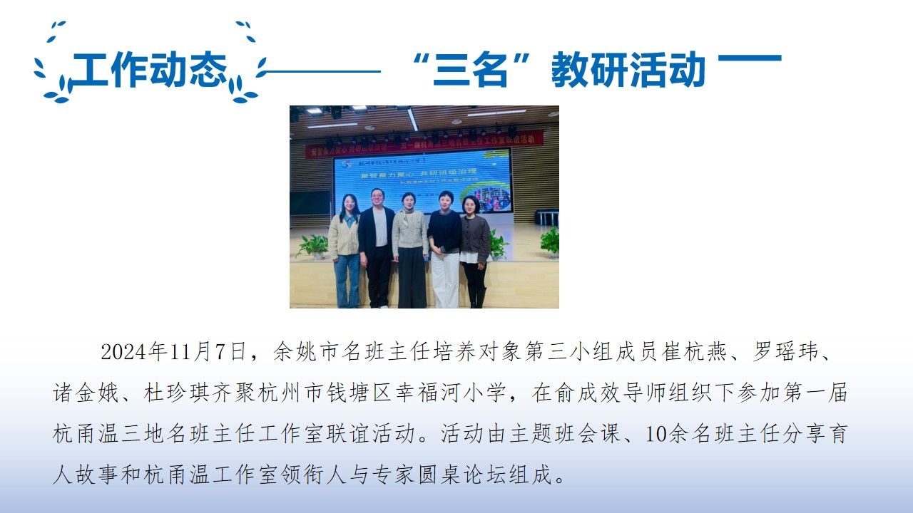 51黑料 基础教育“三名工程”研究中心简报——余姚市第七期(名师、名班主任班活动)