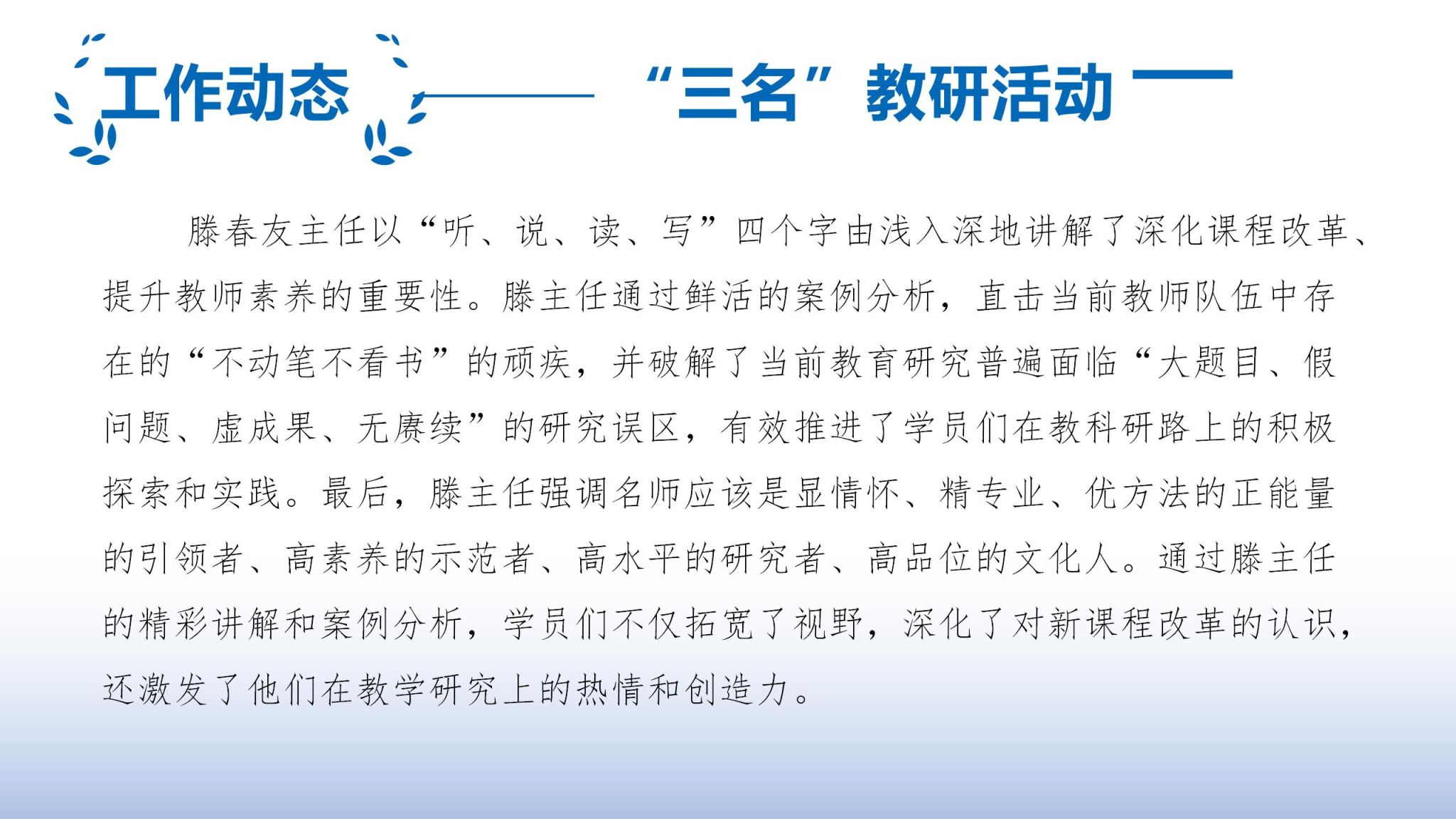 51黑料 基础教育“三名工程”研究中心简报——“新课程新教学新评价”专题培训